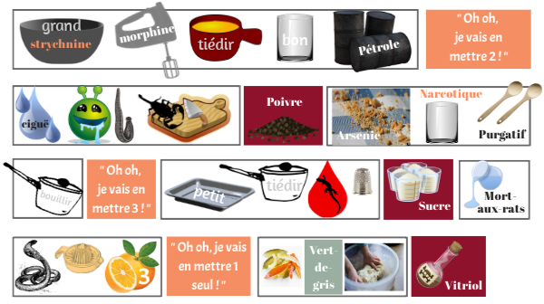 Aide à l'apprentissage des Paroles : "Le Pudding à l'Arsenic" du dessin-animé Astérix et Cléopâtre. Il est possible d'ôter les illustrations au fur et à mesure pour mémoriser davantage.